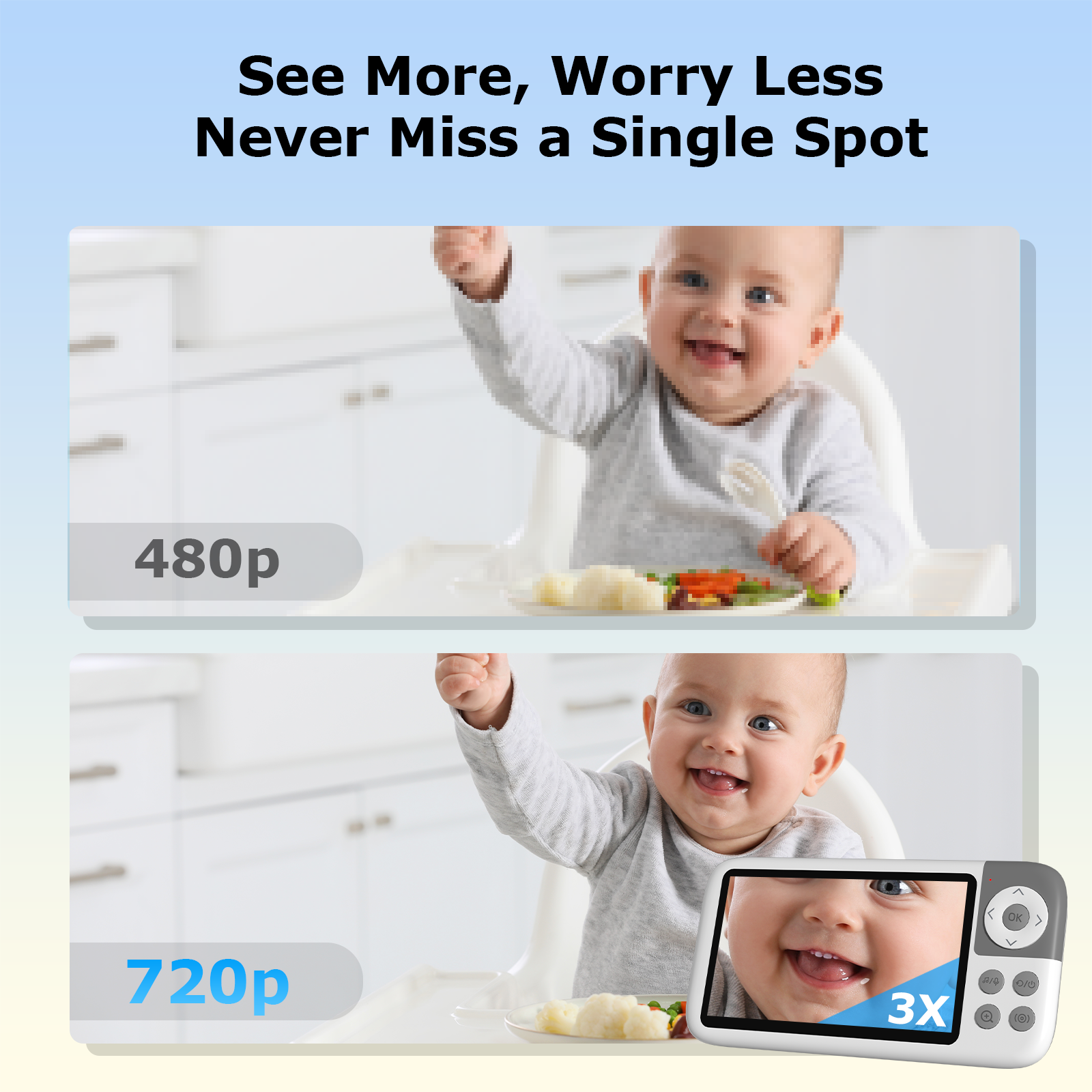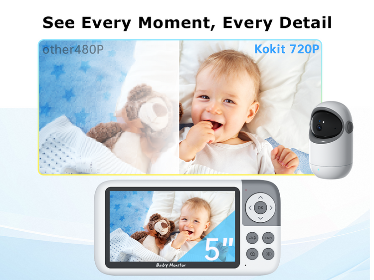 Designed with a charming astronaut theme, the Kokit KK50 brings both advanced monitoring technology and a sense of wonder to your nursery. With a crystal-clear 5” IPS HD screen, 36-hour ultra-long battery, and reliable non-WiFi connection, the KK50 keeps you connected to your baby—safely, privately, and effortlessly.